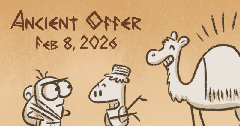To promote my new game ⚡️ ALMIGHTY ⚡️ coming to Kickstarter, for the next month Itchy Feet is traveling to the ancient world! 🏺 This week: I'm sure in a thousand years we'll be rid of these scams.